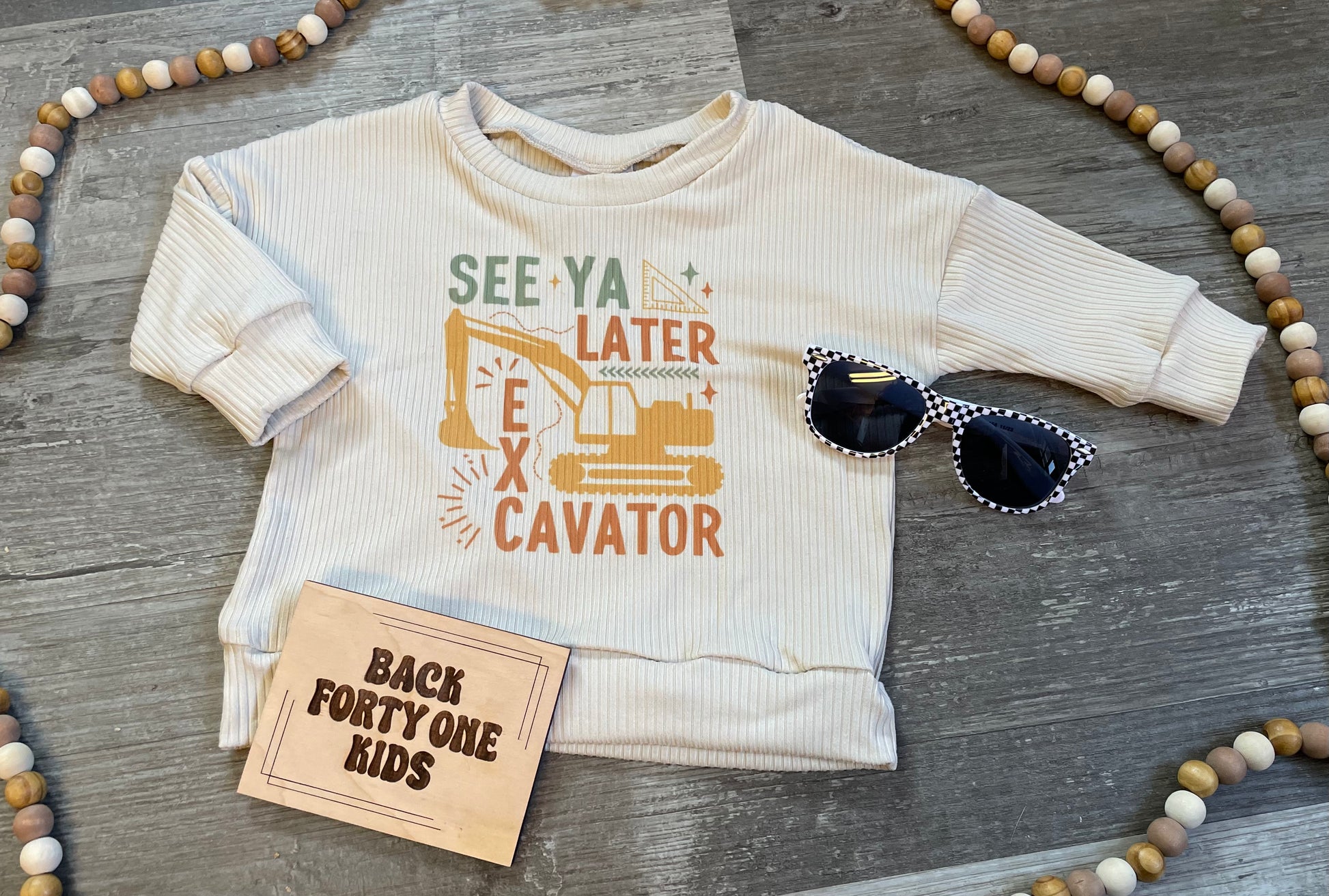 This “see ya later excavator” dolman is sure to make a statement. The dolman is slightly oversized for extended wear.